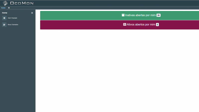 3 - Na Pagina inicial do Ocomon, vá no menu Home →> Abrir Chamado
